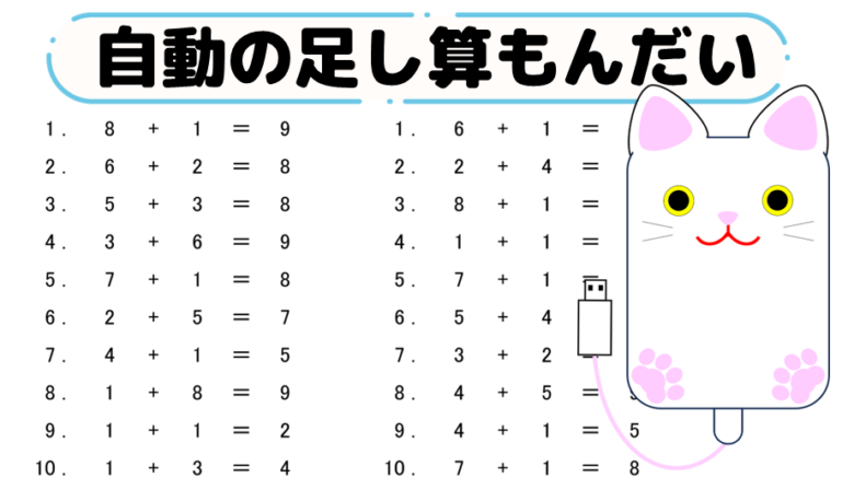 自動で数字を配置する足し算シート