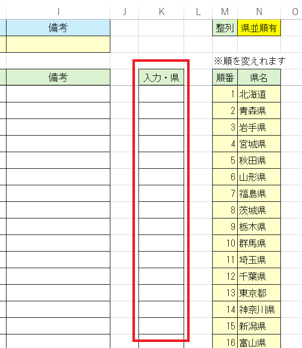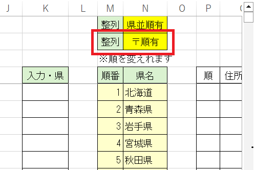 さらに並び順も県名のセルを変えれることで並び順も変更されます。