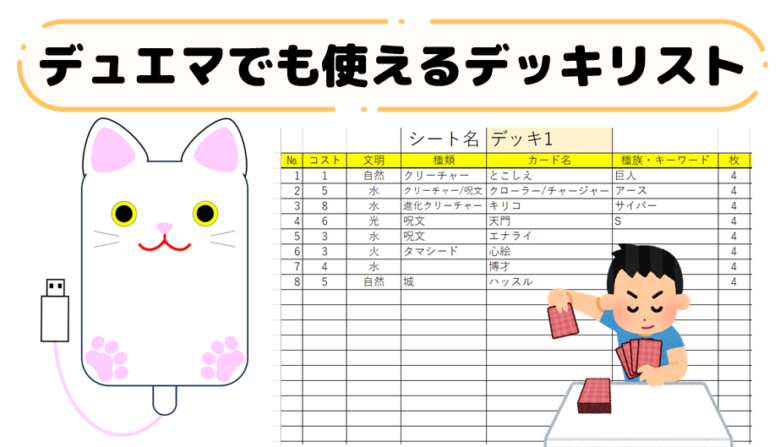 子供に流行中のデュエマの山札のリストをExcelで作ってみました。