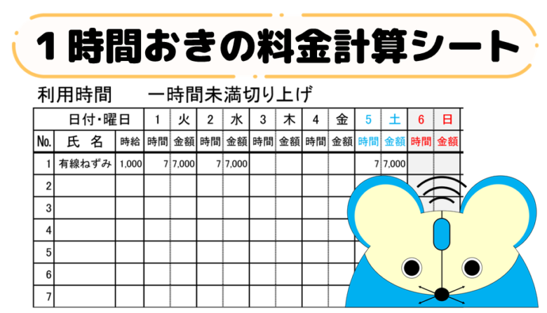 一時利用保育などの料金計算に役立てそうなシート
