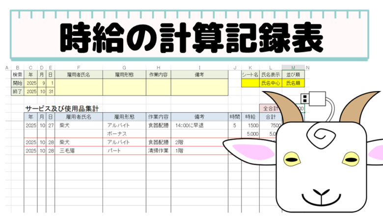 時給計算の記録表を作成しました
