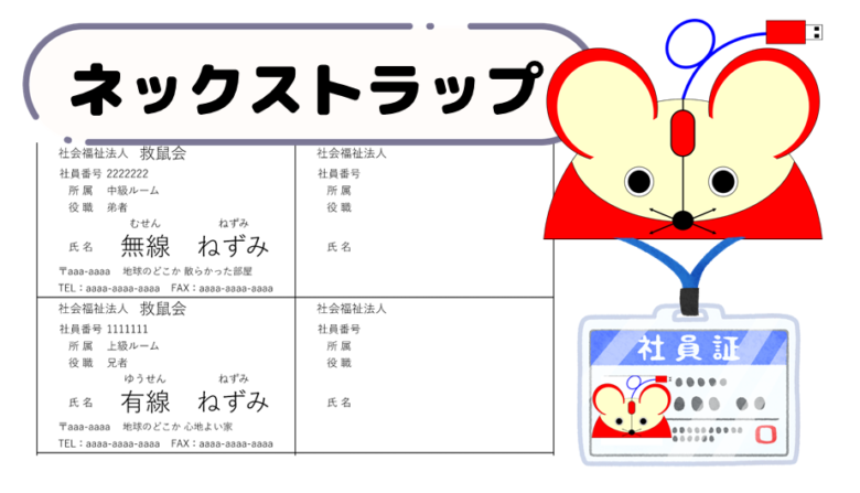 首にかける100円ショップとかで買えるネックストラップにいれる職員証や社員証をA4用紙に印刷するエクセルシートです。