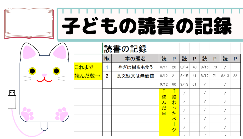 これで記録をつければ今まで何冊読んだとかで自信をつけさせるのです。