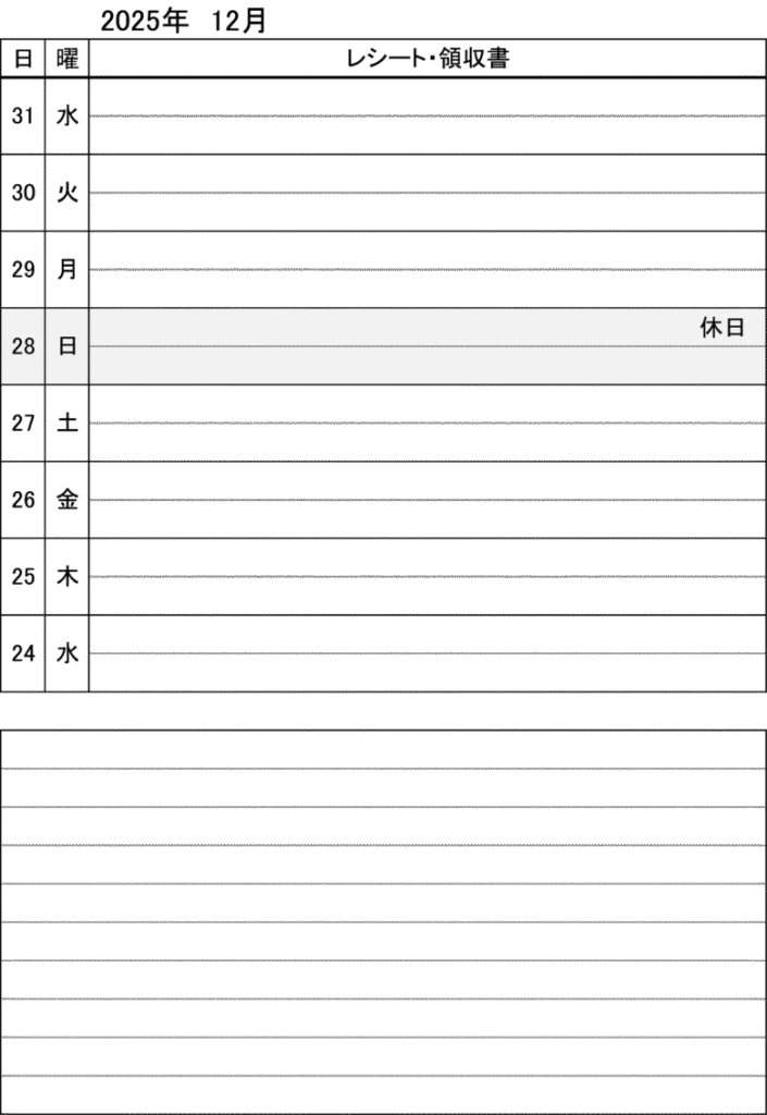 2行にレシートを貼りたい場合などには8日表示がいいと思います