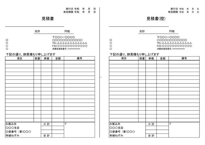 発行日と有効期限は入力の請求日と領収日が反映されます。