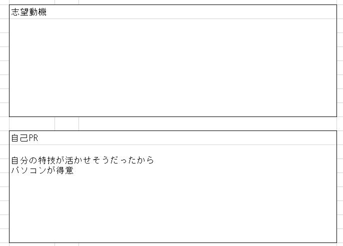 志望動機と自己PRは入力シートに複数行に入力した場合、改行しながら連結されます。