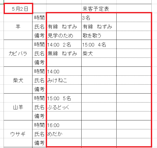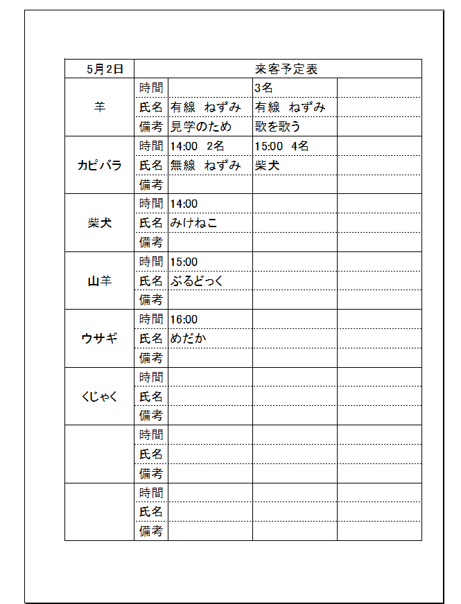 来客の時間ごとに表示する予定表を作成しました。