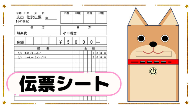 このような買い物などの出納記録から伝票を印刷するシートです。